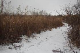 現在の保護区観察路入り口の状況です。この時期の大潟村としては多めの積雪となっています。普段から長靴が必須の観察路ですが更に歩くのが困難になっていました。