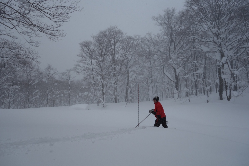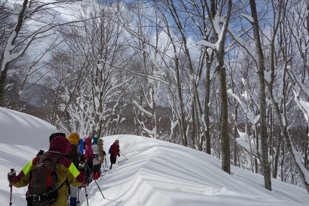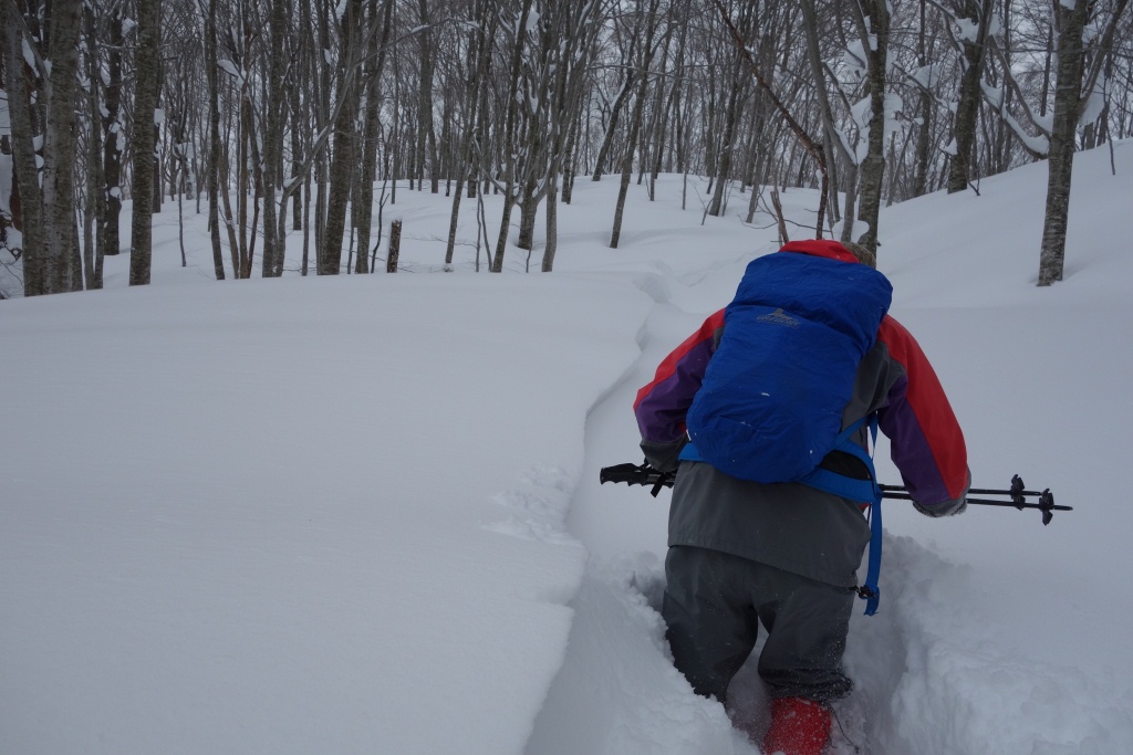 途中、しばしの休憩をはさんで再スタートするも、やはり雪は深く、思うようなペースでは進めません。