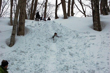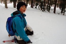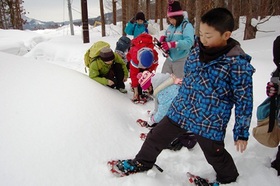 雪には慣れている西目屋の子どもたちも、スノーシューをはくと全然沈まないということにびっくり。