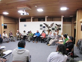 下本保護官の歓迎会を兼ねた昼食会をはさみ、午後からは意見交換会を行いました。