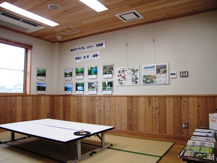 木のぬくもりを感じられる館内では、手作りの展示が満載で、子どもも大人も一緒に楽しみながら過ごせる雰囲気となっています。先日、写真展の設置に伺った際には、夕方時ということもあって、地域の子ども達がひっきりなしに遊びに訪れていて、わいわい賑やかな様子でした。