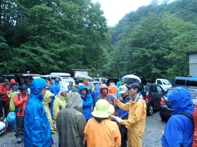 2015年09月08日朝日連峰保全協議会の平成27年度合同保全作業が8月29日(土)~30日(日)、銀玉水上部の荒廃箇所にて開催され、事務局として参加してきました。両日ともにあいにくの雨模様となりましたが、朝日連峰を取り巻く各山岳会の皆さんをはじめ、総勢約50名が集結しました。