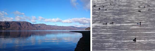 十和田湖に、冬の渡り鳥たちがやってきています。