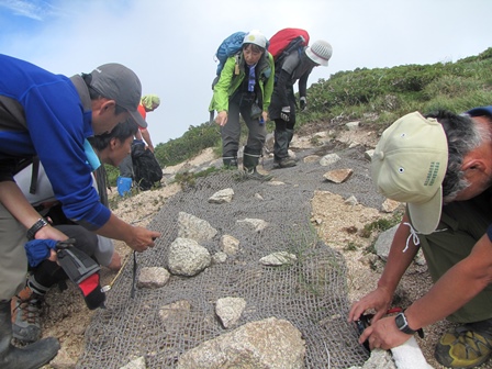 飯豊・朝日両会の保全作業が始まったのは、朝日は8年程前、飯豊は10年程前のことです。長い時間をかけて少しずつ保全手法を確立し、活動が続いています。活動の中では、一人一人を思いやる温和な気持ちも折り重なっているように思いました。