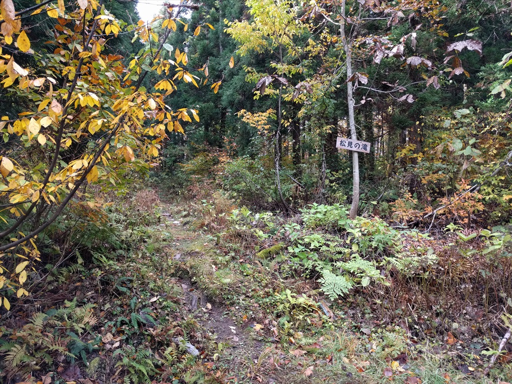 松見の滝への入口です。ここから先は急斜面をトラバースしながら歩く場所が多く、滑りやすいので注意が必要です。