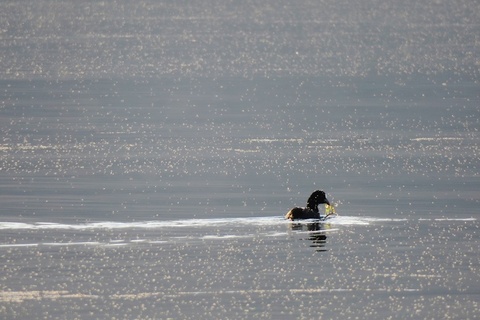 (手前の黒い点々は、水鳥のオオバンです)