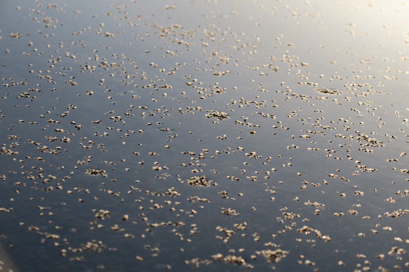 一斉に羽化した雪虫が湖面上や空中に大量発生しています。