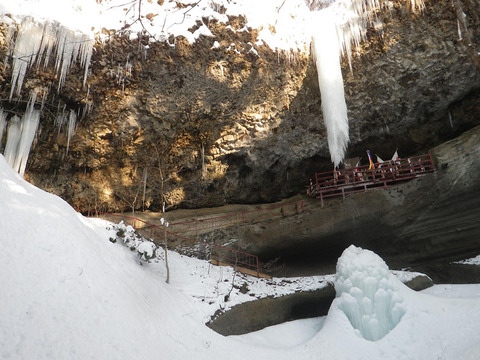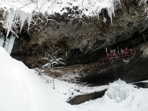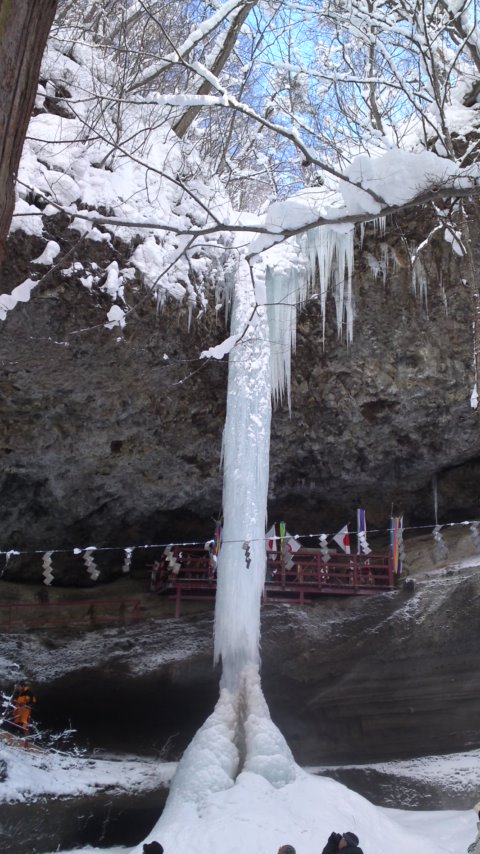 今後の気象条件によっては再び氷柱が成長し、立派な氷瀑となる可能性はあります。そのように氷柱が滝壺に達して一本の柱状になることが見どころというわけですが、必ずしも氷柱が毎年そこまで成長するわけではありません。近年に完全氷結した年は、西目屋村の広報誌によると2014年、2013年、2012年、その前は2008年ということです。