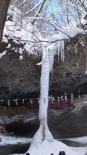 (写真右側が乳穂ヶ滝。左側はただの氷柱です。)