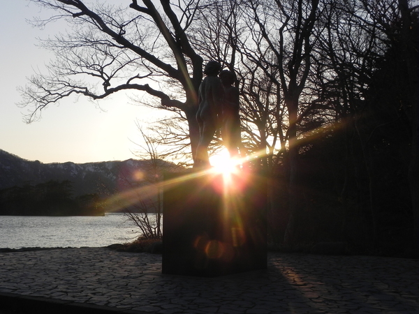 早朝、夕暮れ時、趣深い乙女の像や十和田湖を楽しんでください。