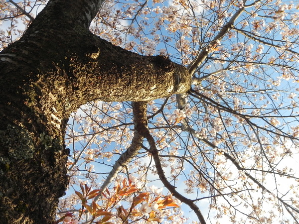 桜の便りが本州を通り抜けて行きました。事務所の近くの休屋北駐車場の今年の桜は終わってしまいました。今年は、雪解けも遅く、また、はっきりした原因はわかりませんが、花芽が少ない木が多く、少しの花が咲いただけで葉が出ていました。それでも、中にはたくさんの花を咲かせていた木もありました。写真は十和田湖北駐車場の5月8日です。八重桜はまだ咲き始めですので、まだしばらくは花が楽しめます。