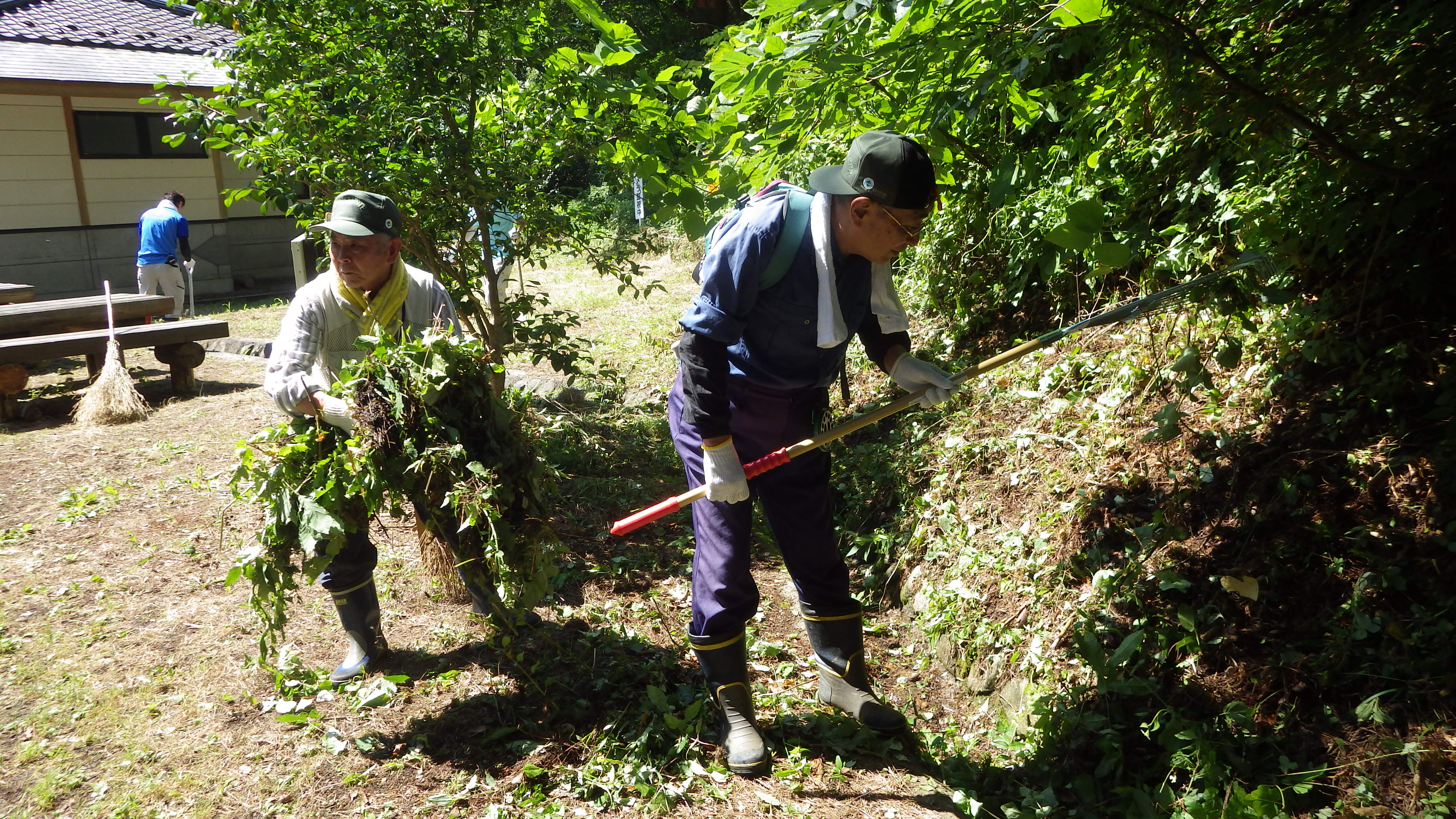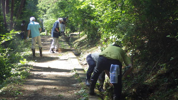 遊歩道ののり面草刈り・除去、側溝の泥かき、手すりの清掃など。