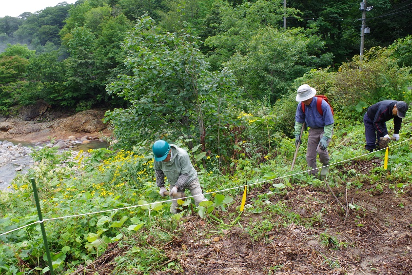 問題意識の共有化を図るため、協働による「オオハンゴンソウ防除活動」を毎年8月に行っています。