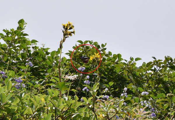 そんな植物達の解説を交えながら登っていくと、ガイドをしていたパークボランティアの1人が何かを見つけました。興奮冷めやらぬその方によると、アサギマダラという渡りを行うチョウがいたようです。ひらひらと優雅に舞う姿が心に残ります。