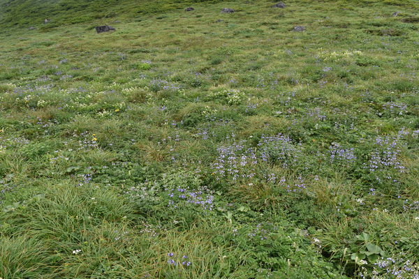 かわりに秋に見られる高山植物が花をつけていたり、雪解けの遅かった場所ではようやく春の花が見られたりと、春から秋までの高山植物が勢揃いでした。