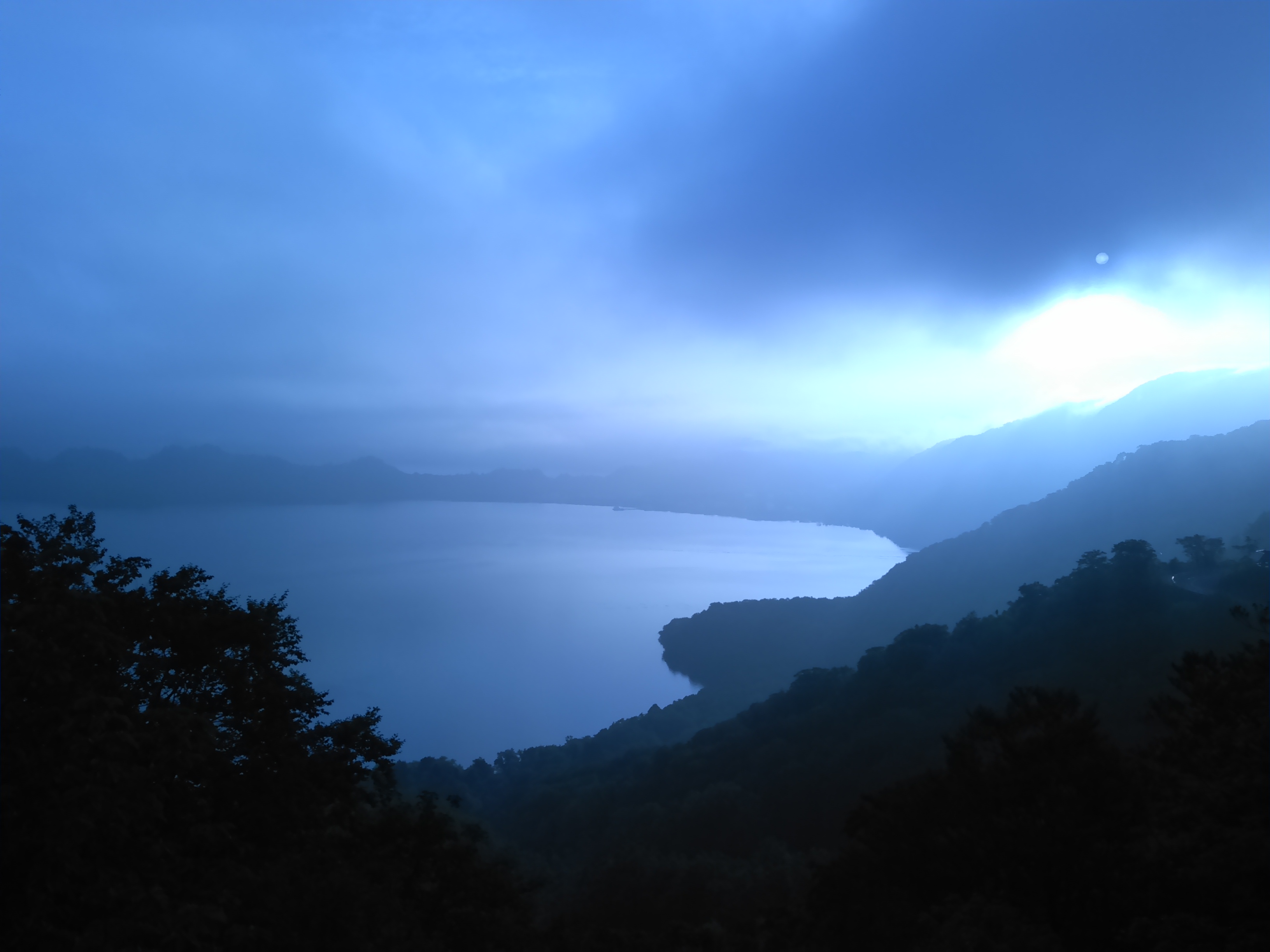 【十和田湖外輪山の白雲亭展望台より 龍が寝そべっているようだ】