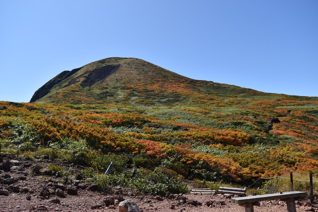 登山道中のあちこちから秋色に染まった山肌を見ることができます。