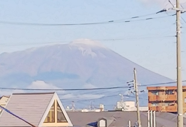 自宅の玄関を出て、岩手山を眺めてから出かけるのが毎朝の日課となっておりますが、本日は岩手山山頂部分がうっすらと白くなっているのが確認できました。