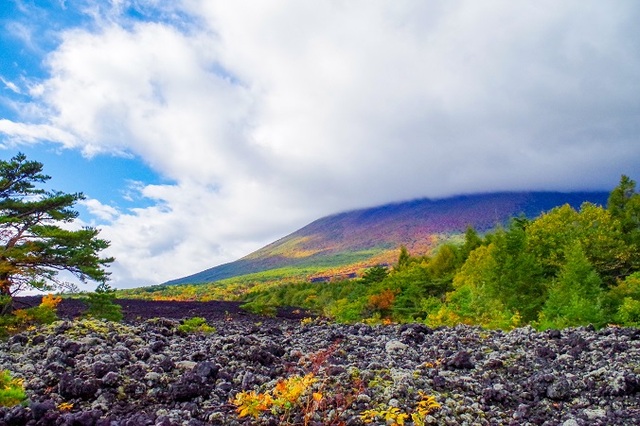 昨日八幡平市の焼走り溶岩流の散策路から見た岩手山は雲の中でしたが、裾野の紅葉が進んでいて、溶岩流の黒とのコントラストが素敵でしたよ。