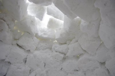 雪洞やかまくらは直接雪を掘って作られますが、今回のイグルーは雪のブロックを交互に積み上げて作ります。均等なサイズのブロックを交互に積み上げていくと、レンガ作りの建物のようにも見えます。