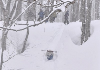 フワフワの新雪に阻まれて中腹あたりで止まってしまった方も多かったですが、最後まで勢いよく滑りきった人が出たときには歓声が上がりました。