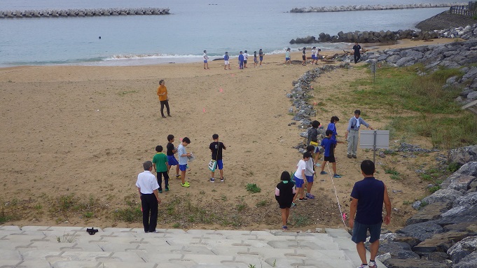 児童たちは花いっぱいの海岸にすることを目指しているようで、