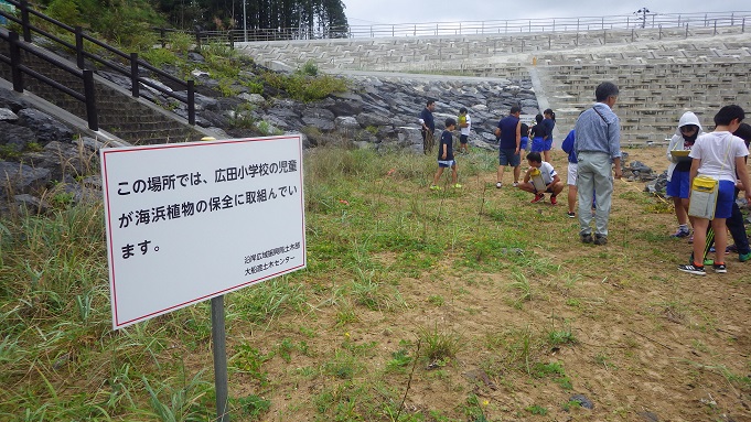 昨年から継続して取り組んでいる「海浜植物の再生活動」の現場、