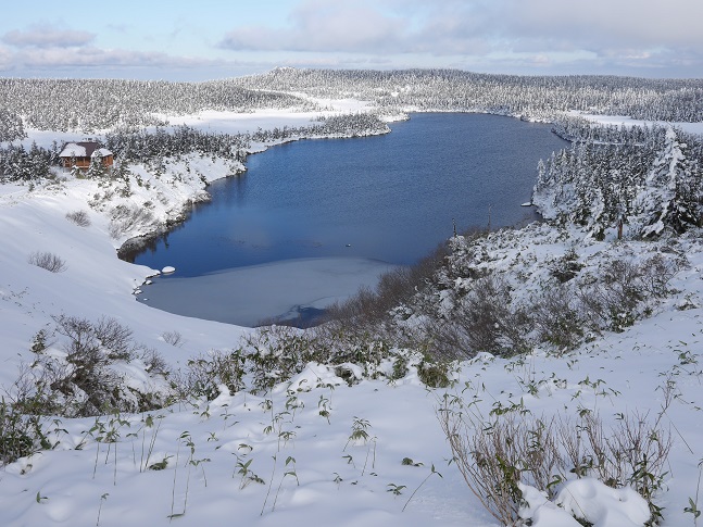 11月2日に八幡平山頂周辺の巡視を行いましたが、想像以上に積雪があり、事務所のある盛岡市内とは全く別世界、白銀の世界が広がっていました。
