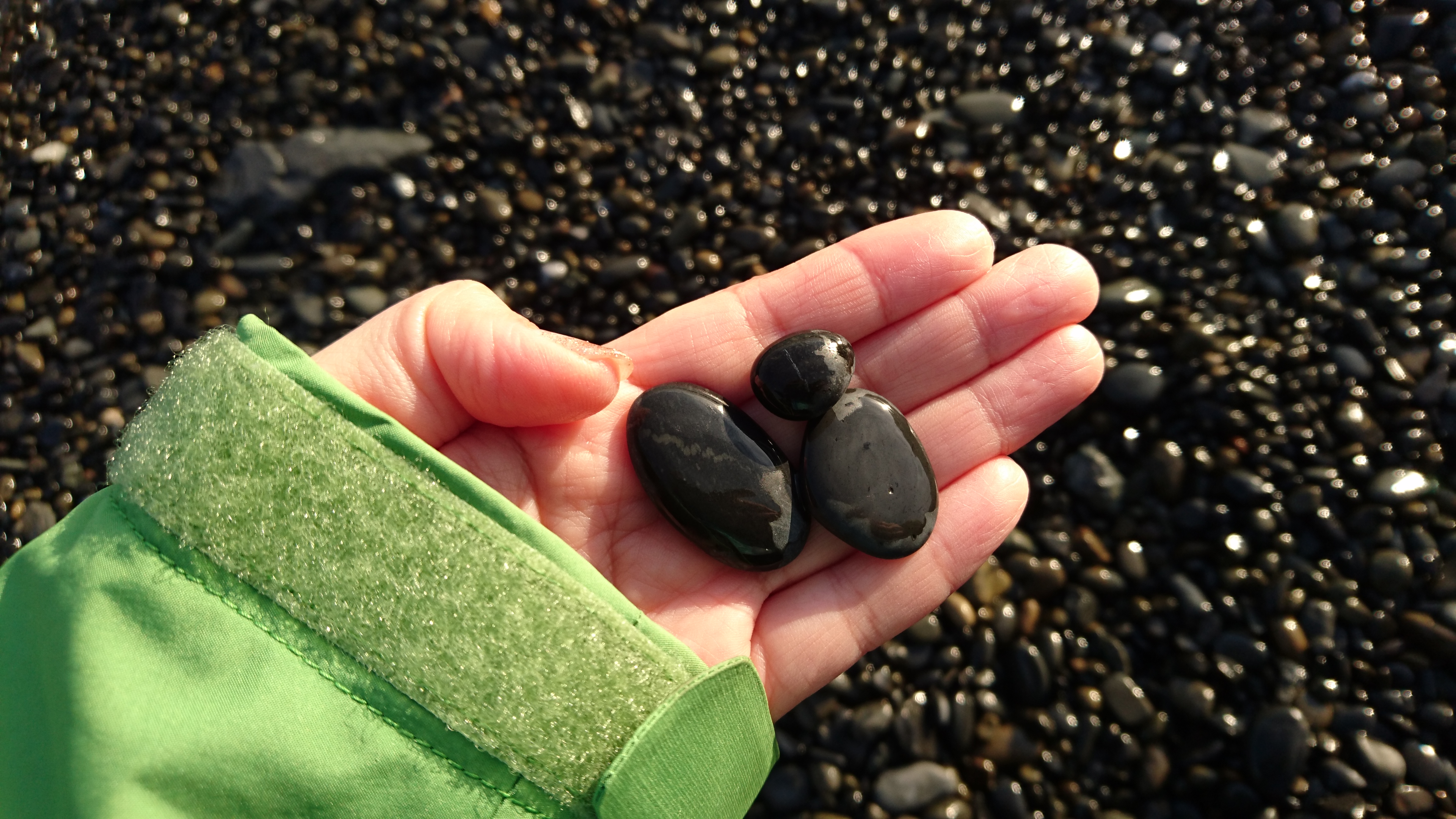 碁石の黒石のような真っ黒で真ん丸な石をさがします。