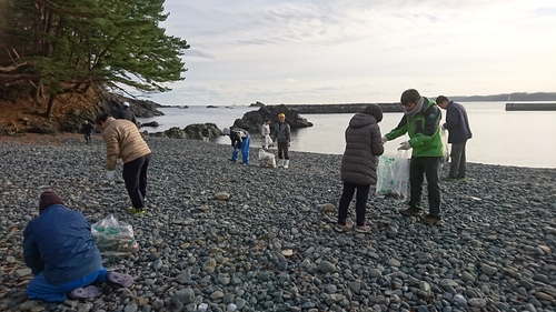 碁石地域の住民・関係者で碁石浜のごみ拾いを行うことになり、