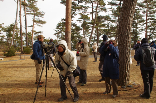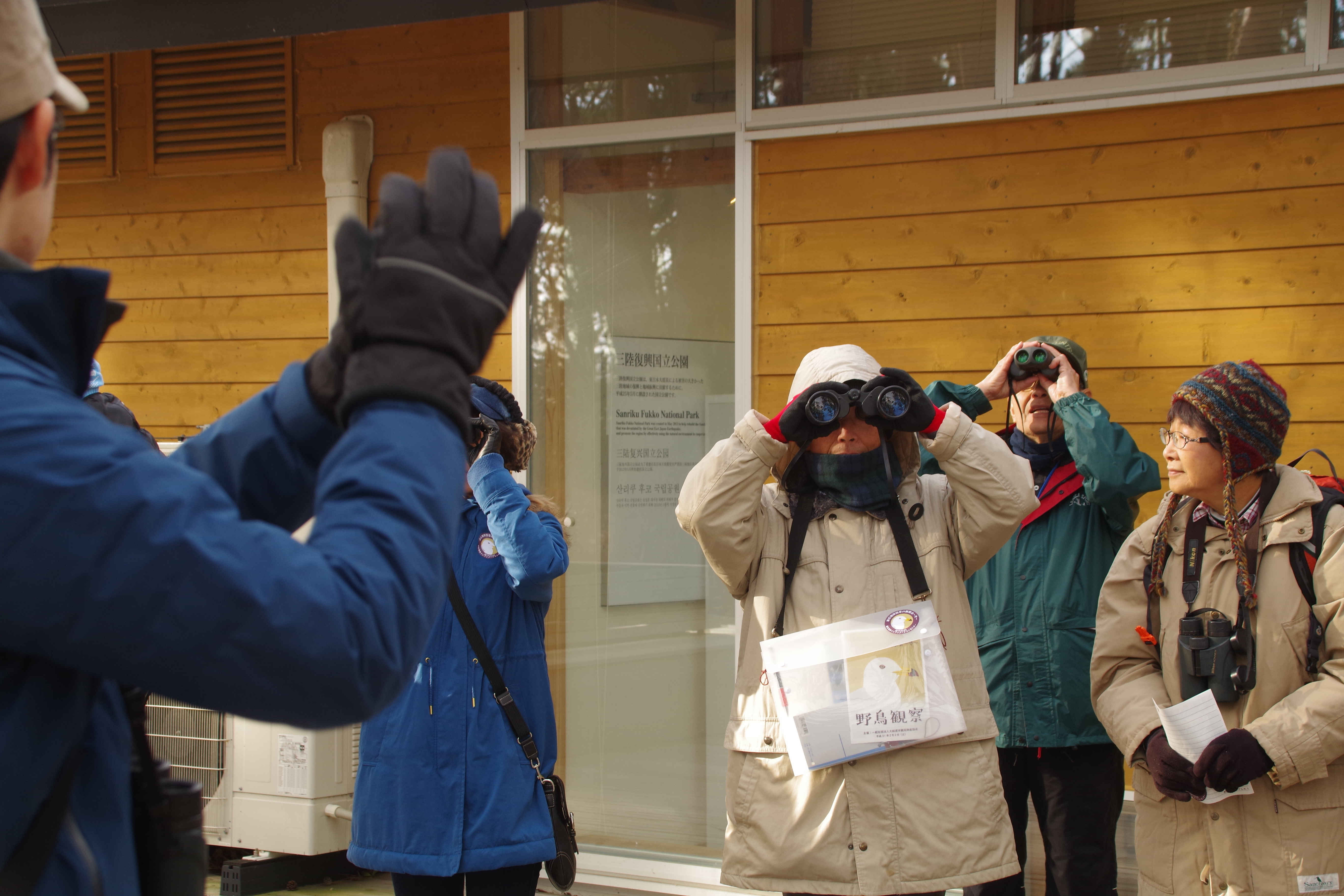 動きの速い小鳥たちを慣れない双眼鏡で何とか見ようと皆さん必死です。