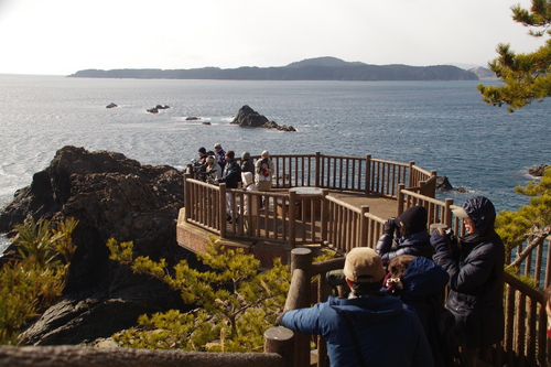 海に突き出た碁石崎展望台は絶好の海鳥観察所。
