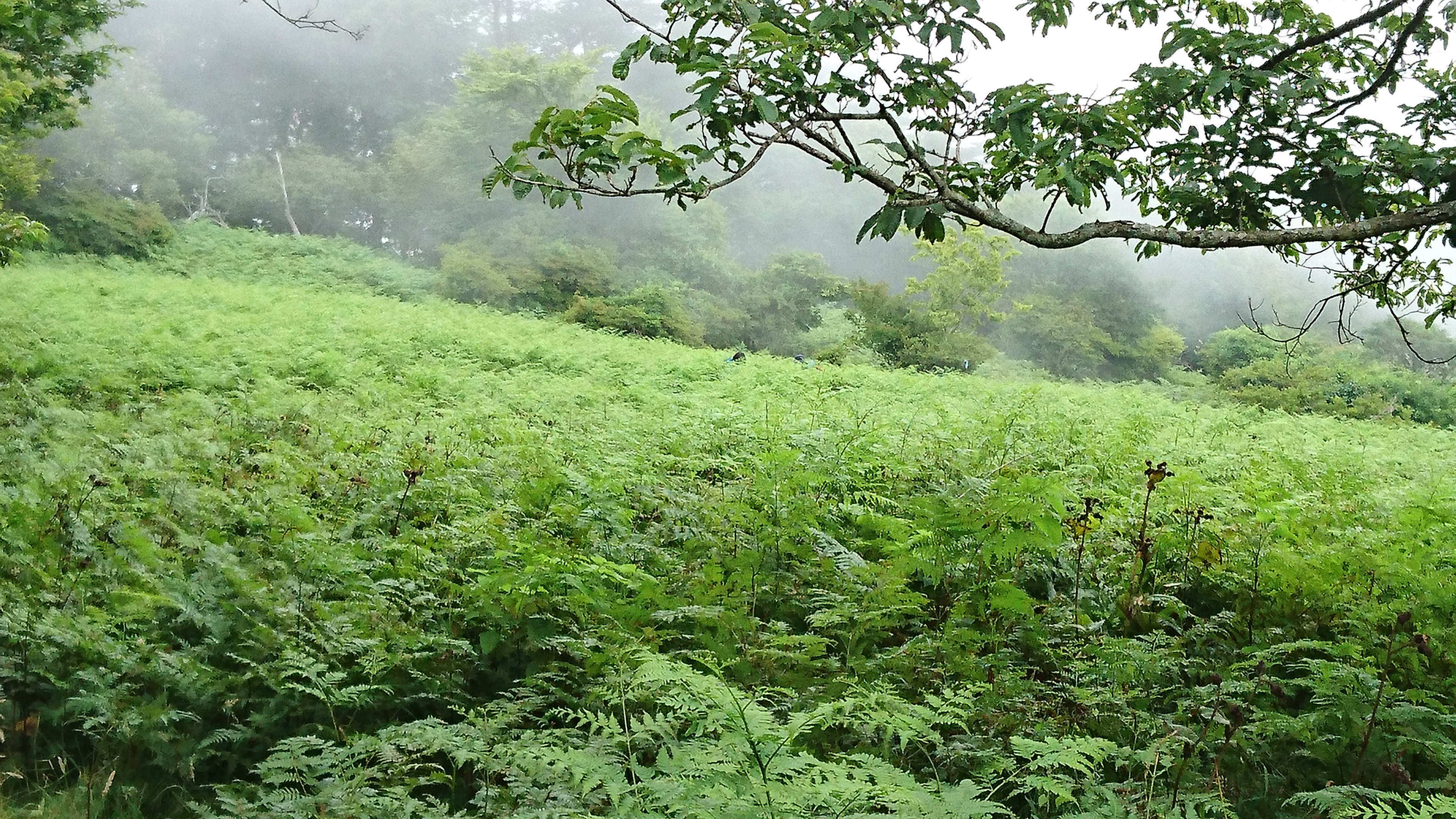 地面にころころしているのはニホンジカの糞です。シカがワラビ食べてくれたらモンスターにならないのに。