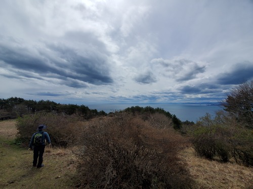 標高差50メートル急坂のつづら折りを登り切ると道の左右に海が見える気持ちいい尾根歩きになります。