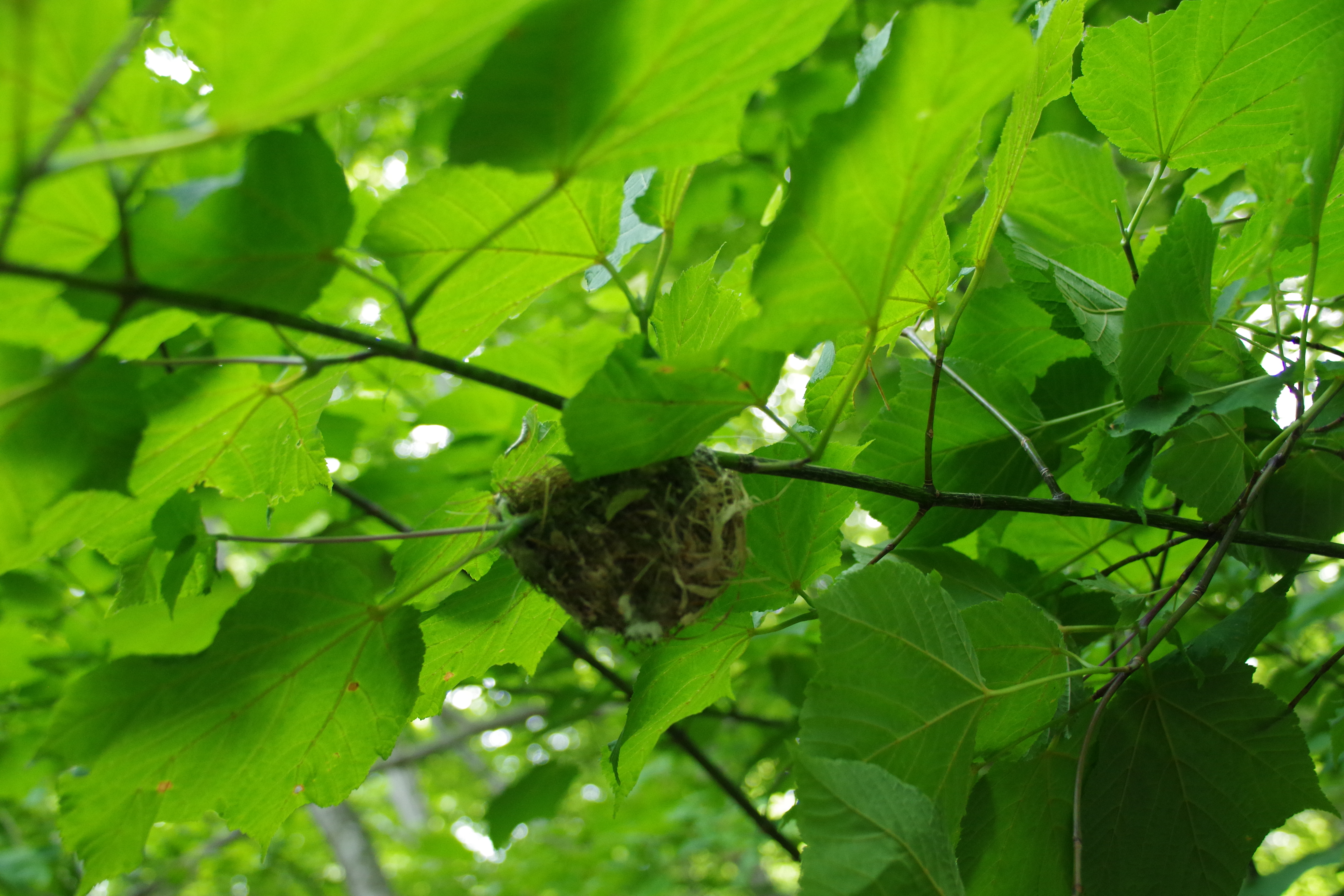 まだ若いウリハダカエデのしなる枝の先に作られていました。
