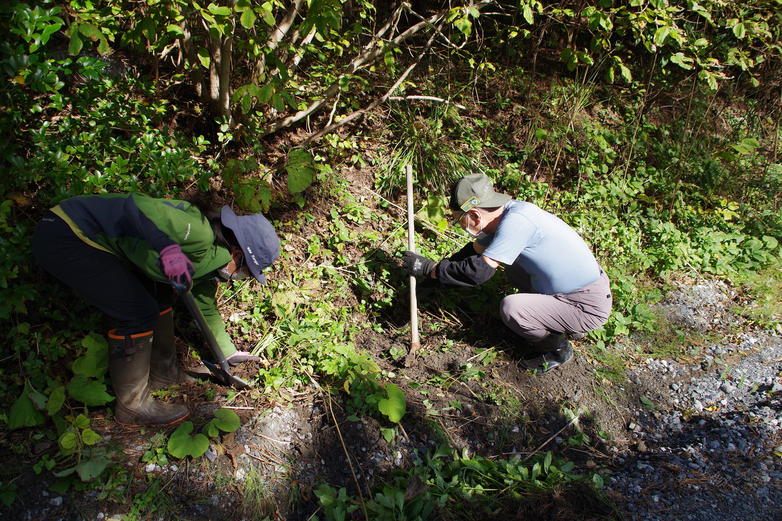 駆除作業をしながら採石の混じった場所で根掘り作業が多いように感じました。