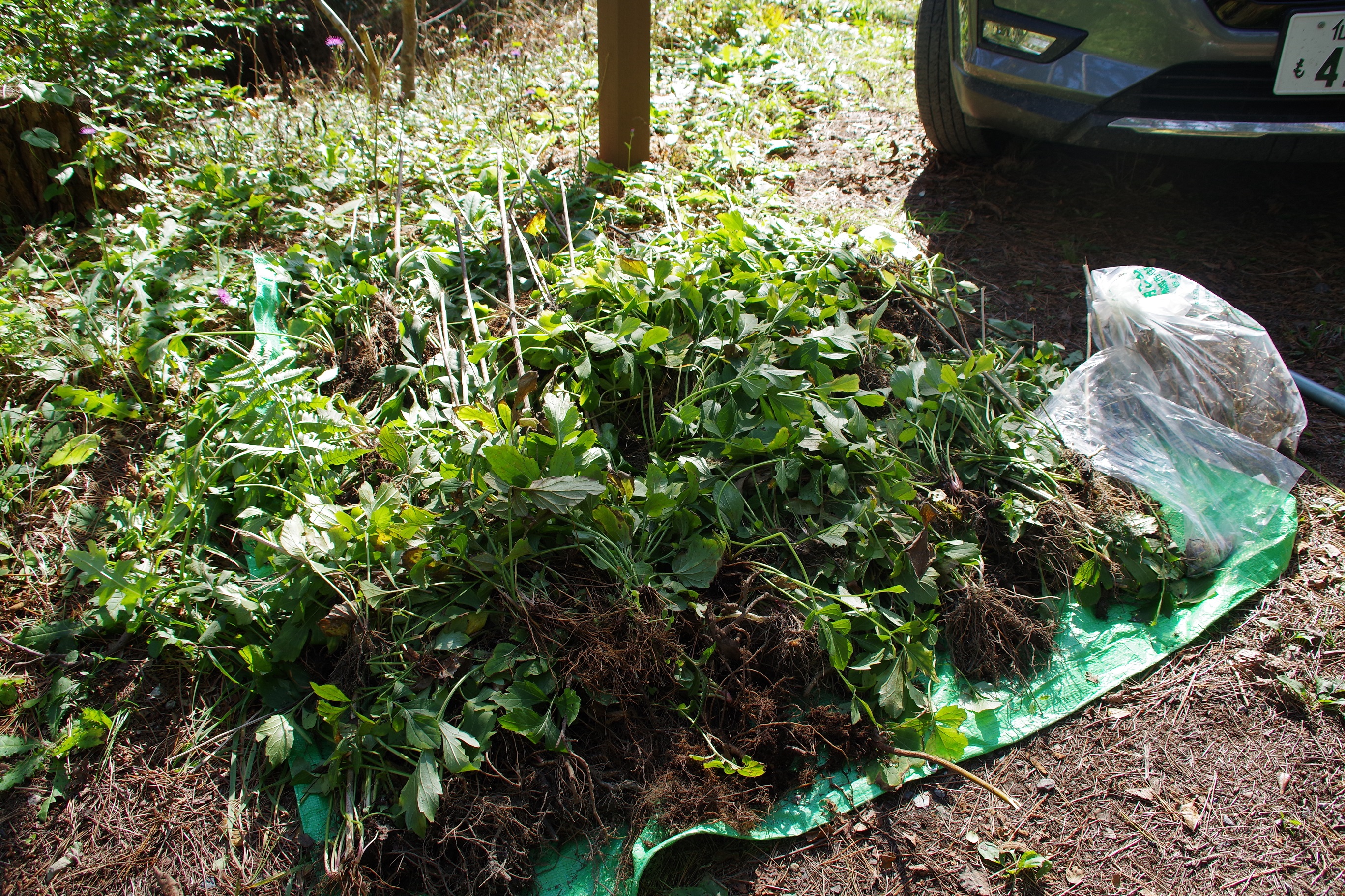 今回の成果はシート一面、乾燥・枯死させてゴミ袋3つ分にもなりました。