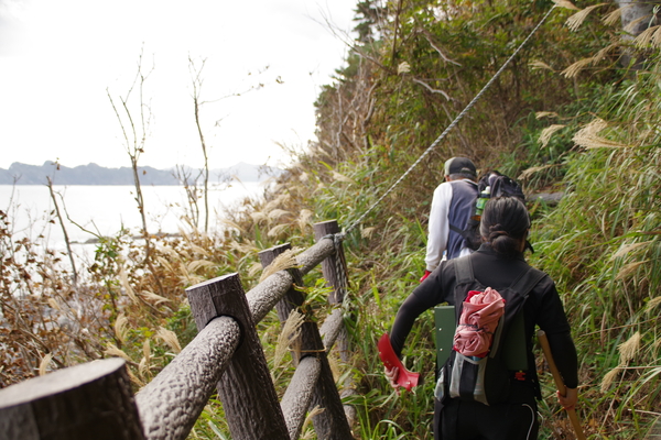 遊歩道から岩場に降りる階段周辺をさっぱりと刈り上げてきました。