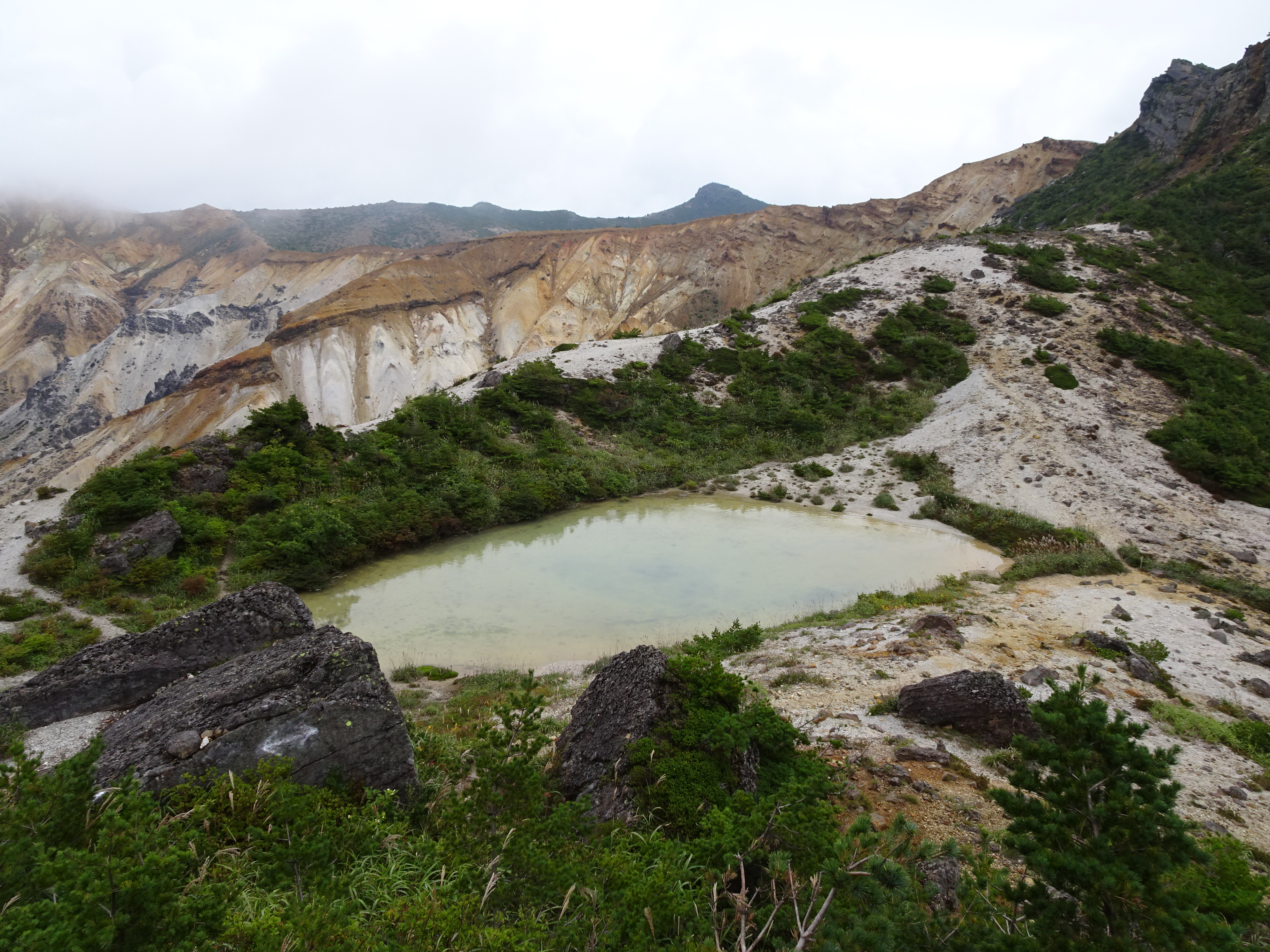 写真等でよく見ていた沼ノ平火口を目にした瞬間は、一瞬息をのむほどでした。火山活動のすさまじさとともに、その荒涼とした景色に美しさを感じていました。