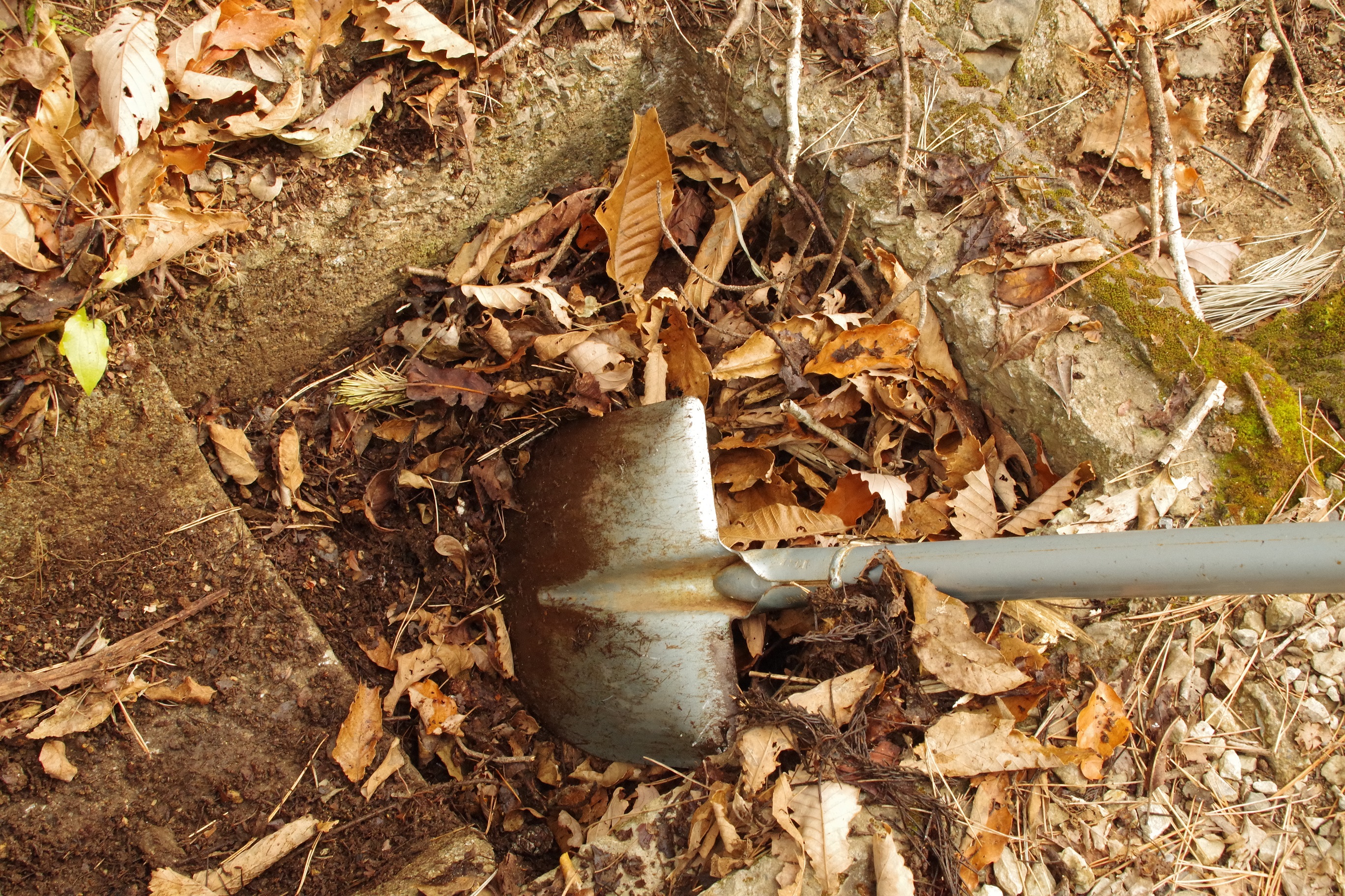 水路としての側溝ですが、泥と落ち葉のたまり場になっています。