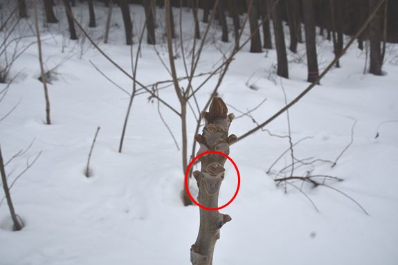 いつ見てもほっこり笑わせてくれるオニグルミの冬芽。