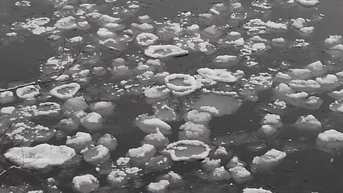 〈湖面に浮かんだ氷には鳥達なら乗れるかな?〉