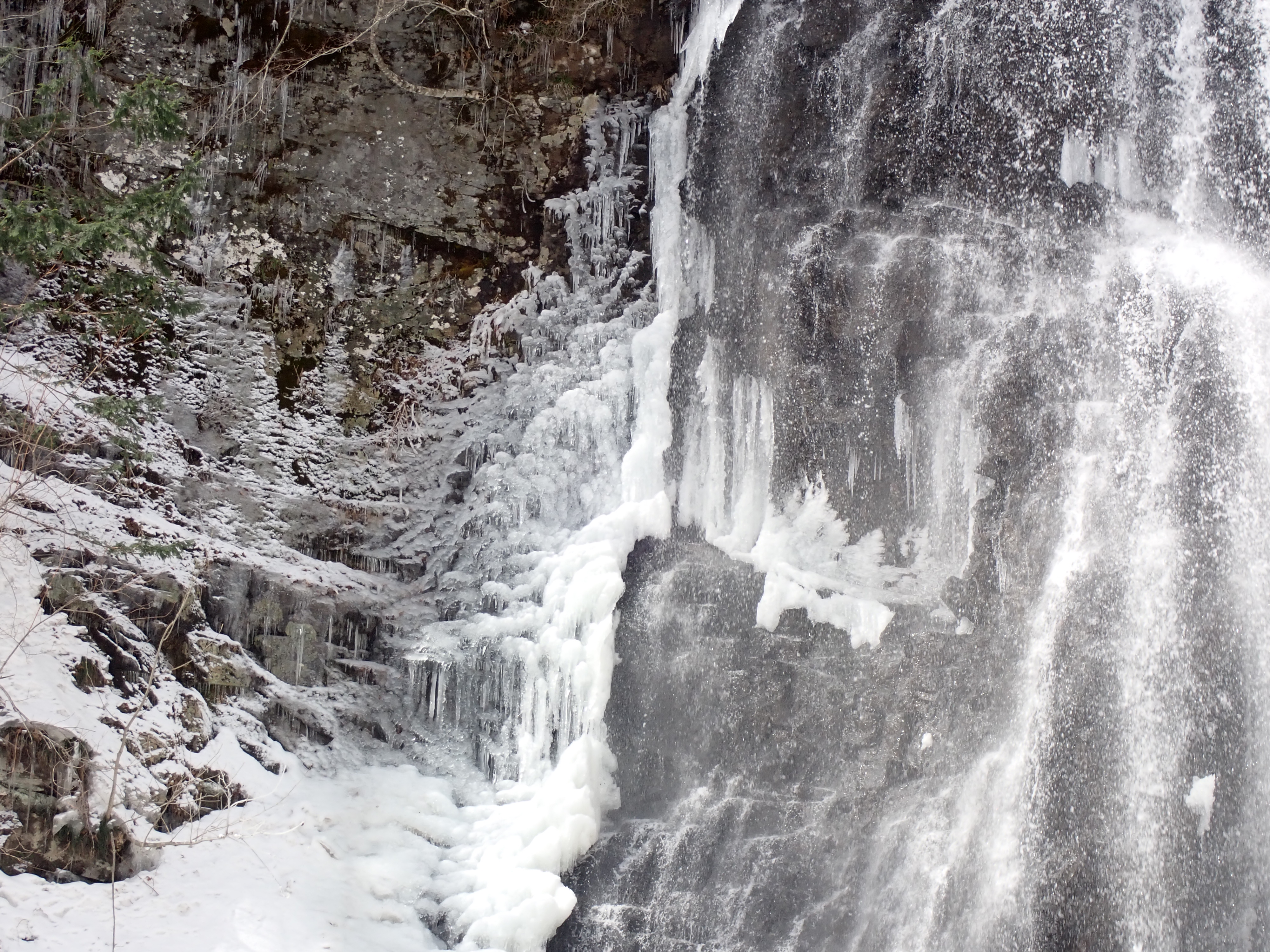 しかし、ブルーはどこに・・・。おそらく数日間気温の高い日が続いたため氷塊が溶けその姿を見ることは叶いませんでした。それでもわずかに(見ようによっては)滝の左端の方が青白く見えました。
