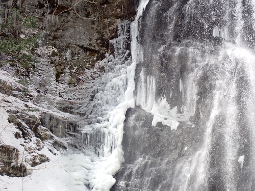 滝の水しぶき等が周囲から少しずつ凍り、できた氷塊が青く輝くといわれる「ブルーフォール」。