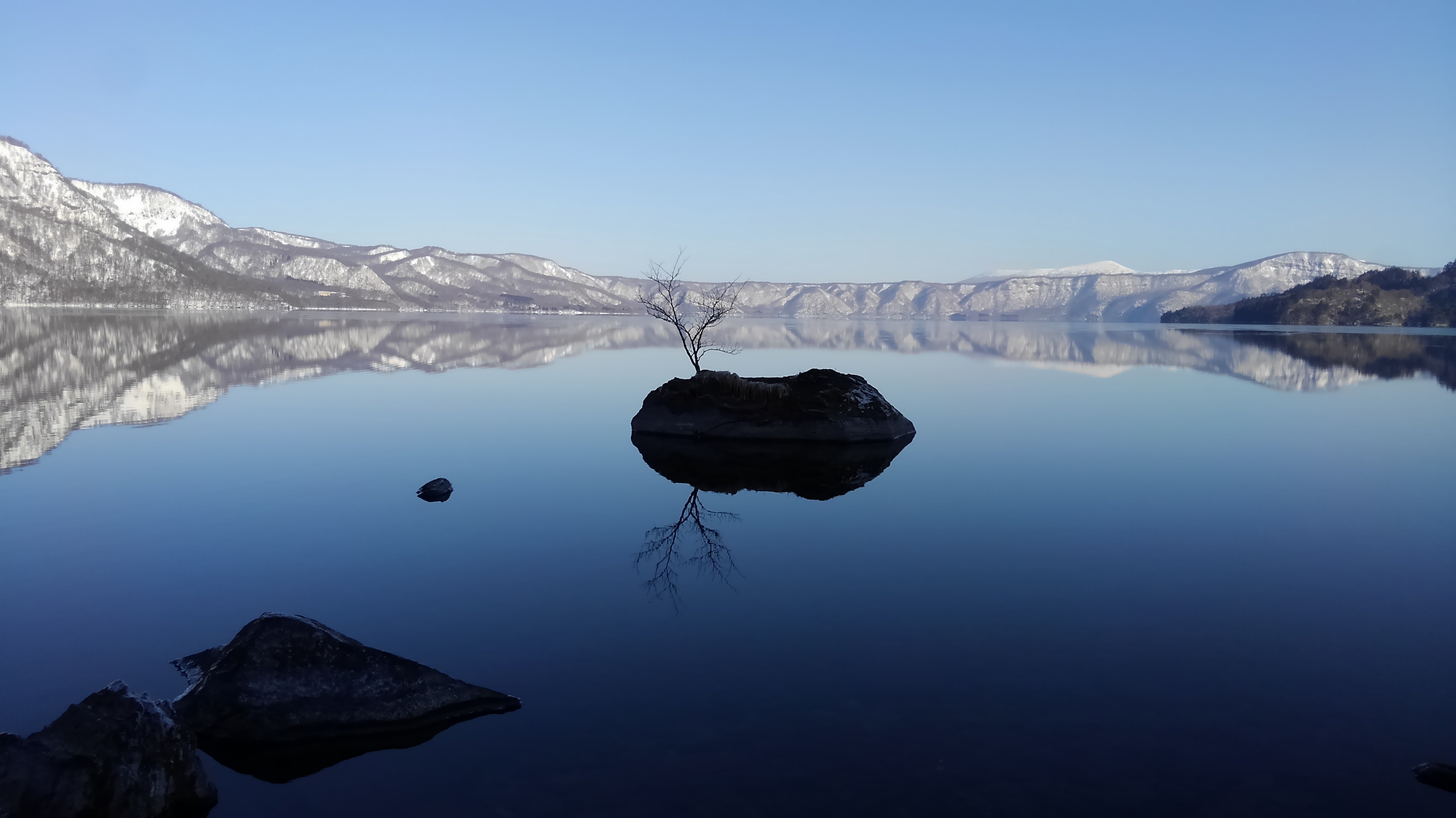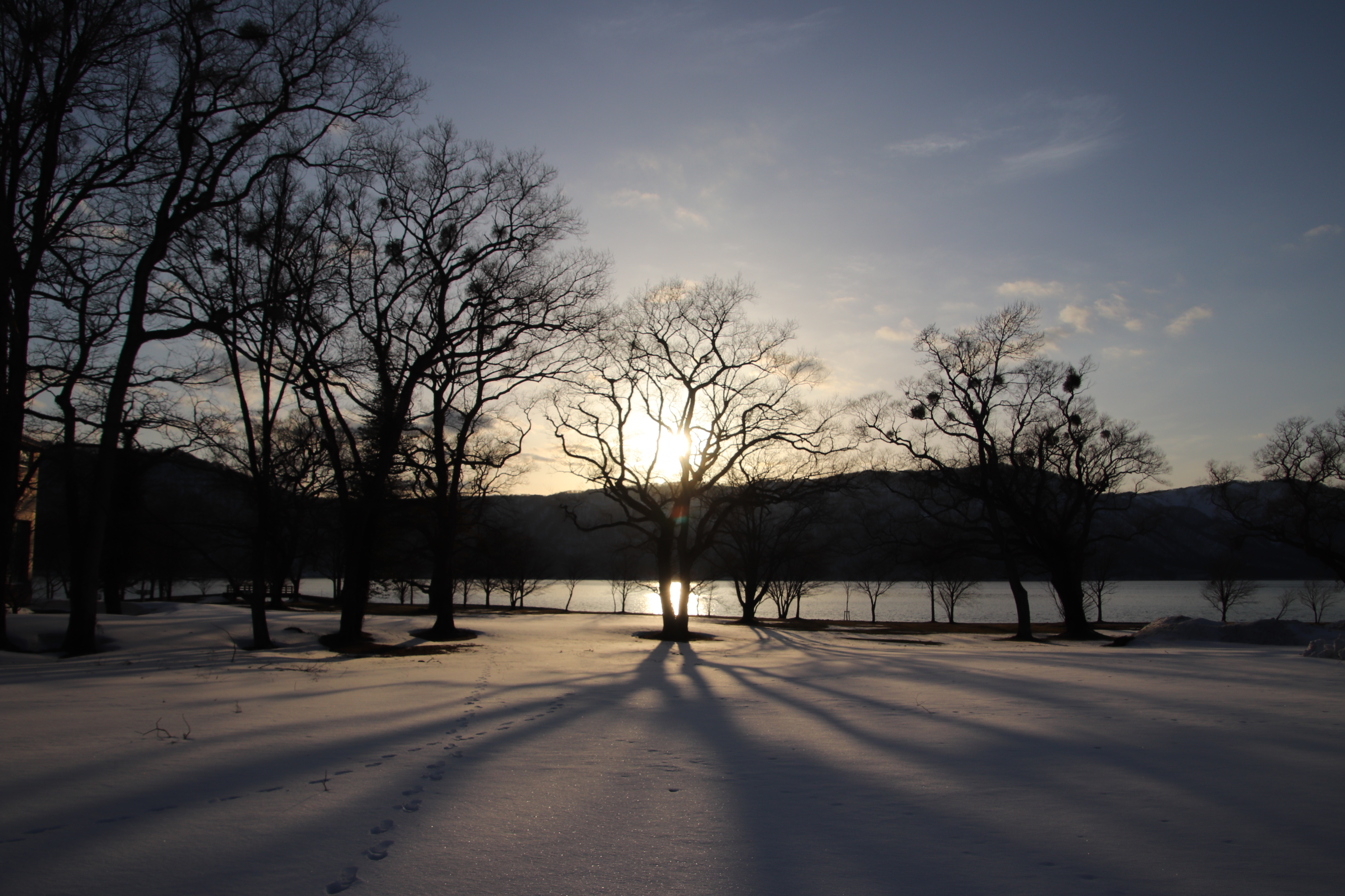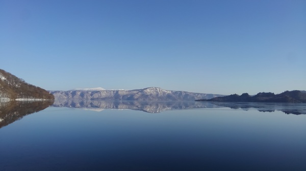 弥生とはいえ、氷点下に冷え込んだ朝は、木々の霧氷がキラキラ輝き、穏やかな湖面にはガラスのような氷の膜がはり、言葉にならない美しさです。
