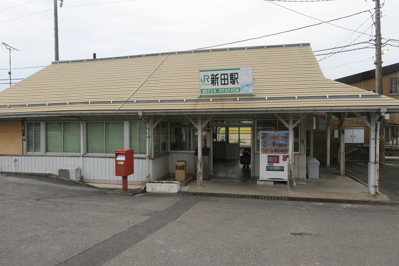 新田駅のあるのは、登米市迫町新田狼ノ欠(おいのがけ)、10月頃から2月には駅裏の田んぼでマガンやハクチョウが迎えてくれる無人駅です。