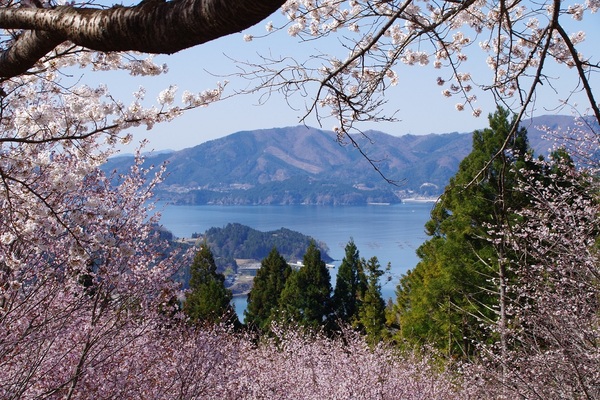 大船渡・越喜来 桜色の背景(2021/4/2)