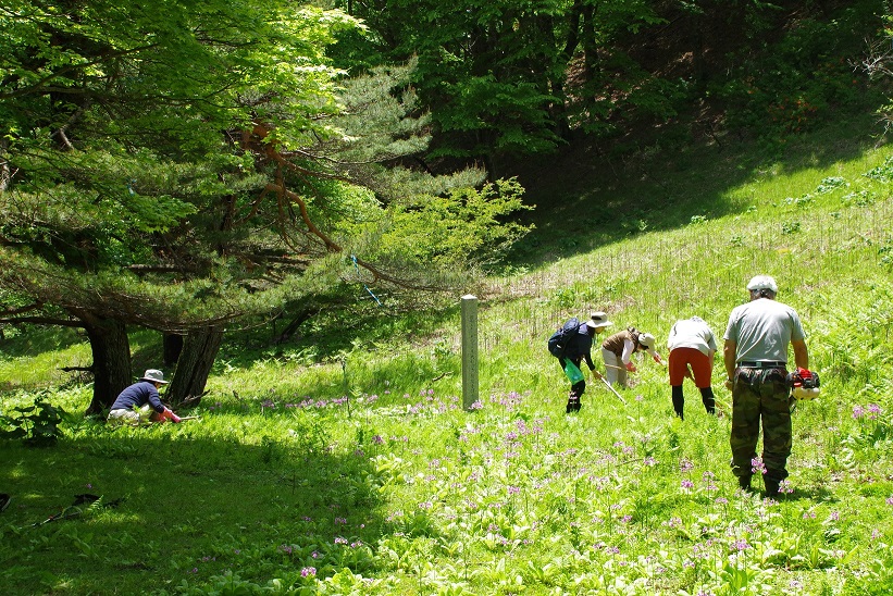 地元有志・環境省パークボランティア・南下中ハイカーと7名で整備です。