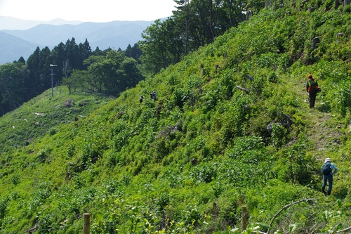 草刈り整備箇所は峠を登り切った先、せっせと登ること1.5時間。