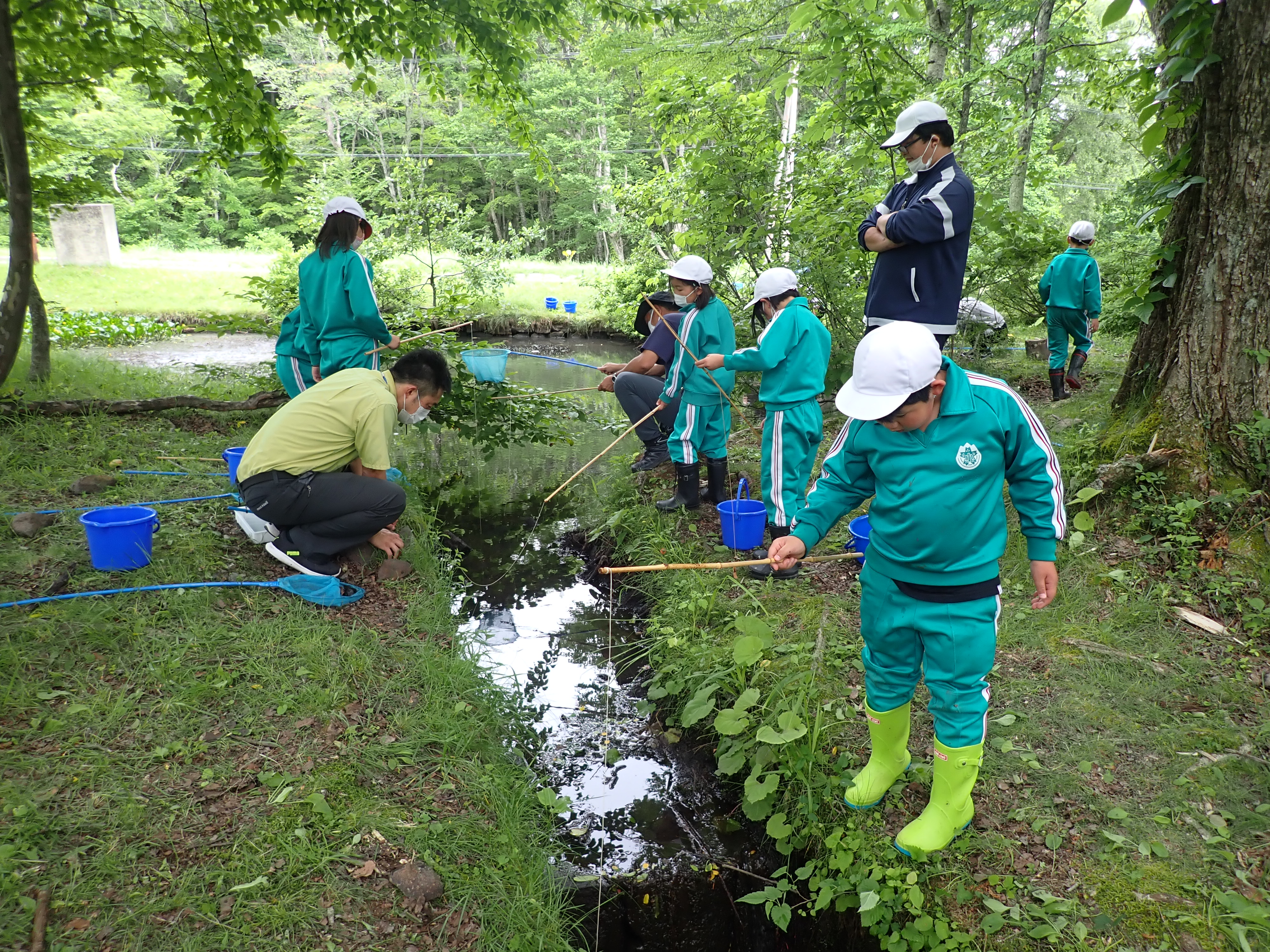 というようなお話を踏まえて、週末の金曜日に曽原湖の近くの小さな沼で、ウチダザリガニ釣りが行われ